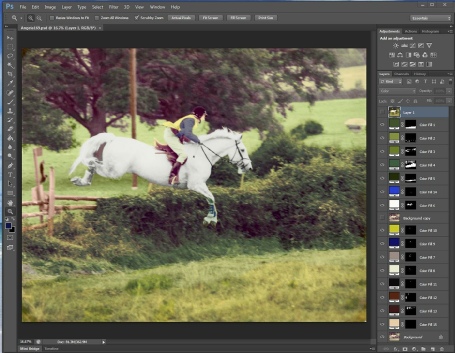This next picture is a recolour. Again in Photoshop, and just goes to show that you don’t need to start with an old B&W picture,to use this technique. My sister did some horse riding when she was little. This picture was taken by one of her friends Dad’s. Framed by my Mum and then faded in the light over the years. It was handed to my with the words ‘see what you can do’. So here it is.