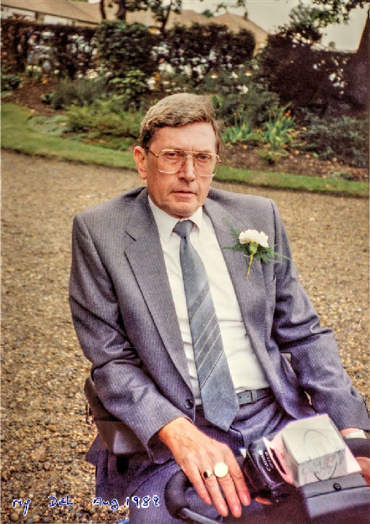 Now, because I wanted to retain all of the colour and shadow detail I used an HDR technique. By taking 3 pictures and blending them together using Photomatics. Recently I have been using another program called SNS, more of that later. This picture only then required cloning out the person behind my uncle Del, doing contrast, brightness a little cloning was also needed to remove the creases where the original was rolled up. I also added a nice touch by finding my Aunt had written ‘My Del Aug 1989’ on the back of the original. This I scanned enhanced and added to the bottom left of the picture. Just to make it that much more personal. The finished picture was then printed out using my trusty Epson 1500W to A4 glossy 230 gsm photo card for her to frame. Here is the finished copy: